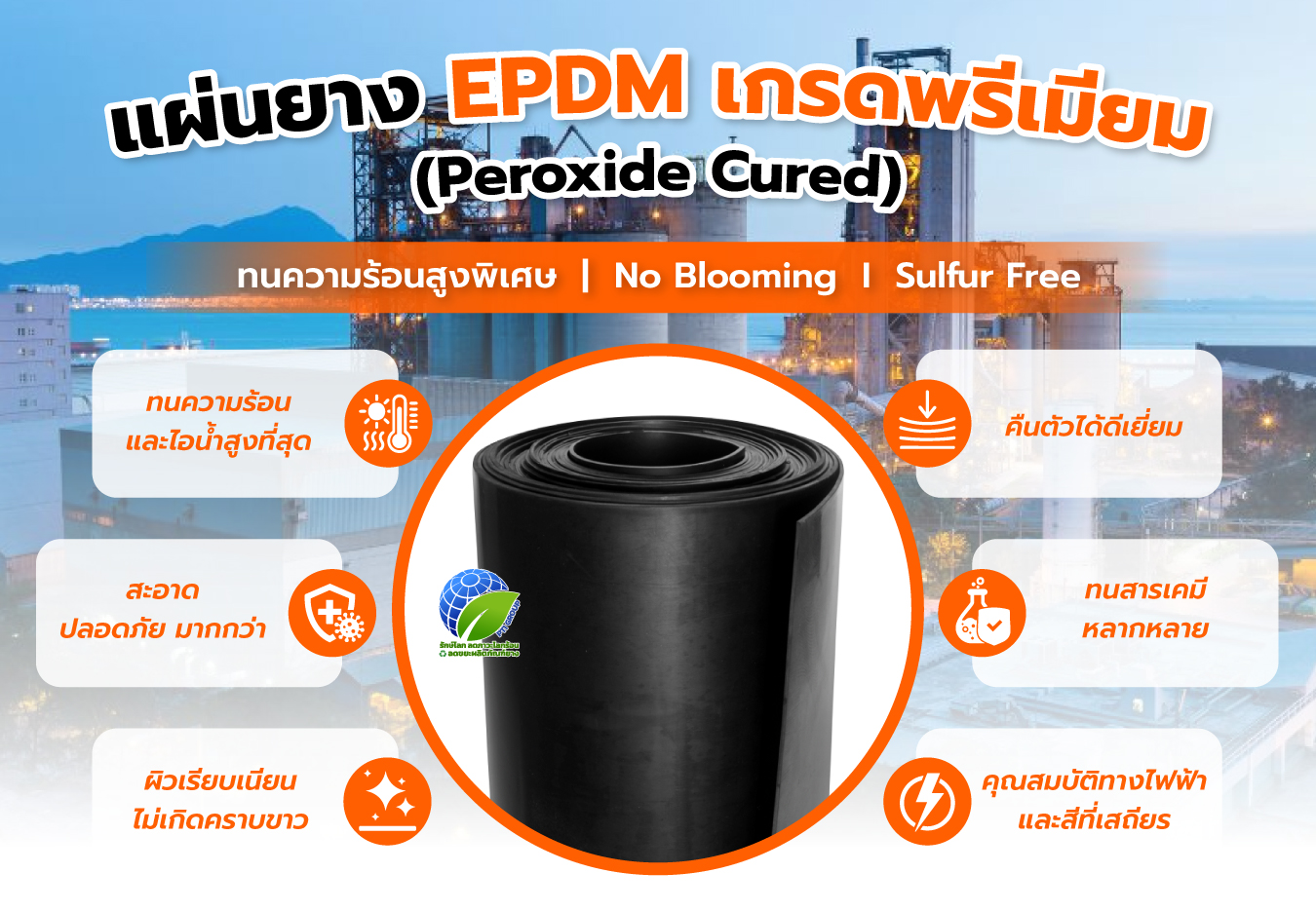 ด้วยโครงสร้างทางเคมีที่เหนือกว่า แผ่นยางรุ่นนี้จึงถูกออกแบบมาเพื่อ "งานที่ต้องการความสะอาดสูงสุดและทนทานที่สุด" ปราศจากปัญหาคราบฝ้าขาว (Blooming) ทนความร้อนและไอน้ำได้ต่อเนื่องและสูงกว่า และปลอดภัยปราศจากสาร Nitrosamine 100% เหมาะอย่างยิ่งสำหรับโรงงานอุตสาหกรรมที่ต้องการลดรอบการซ่อมบำรุง และมองหาความคุ้มค่าในระยะยาว