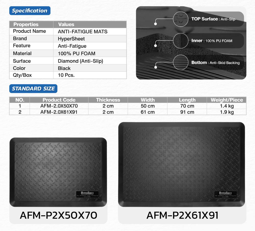 1. การลดแรงกดและการกระจายแรง : แผ่นกันเมื่อย HyperSheet ผลิตจากวัสดุ PU Foam คุณภาพสูง ได้รับการพัฒนาและออกแบบมาเฉพาะ มีความยืดหยุ่นสูงและออกแบบให้ช่วยกระจายแรงกดบนพื้นผิว ลดแรงสะเทือนที่ส่งผ่านขาและเท้า