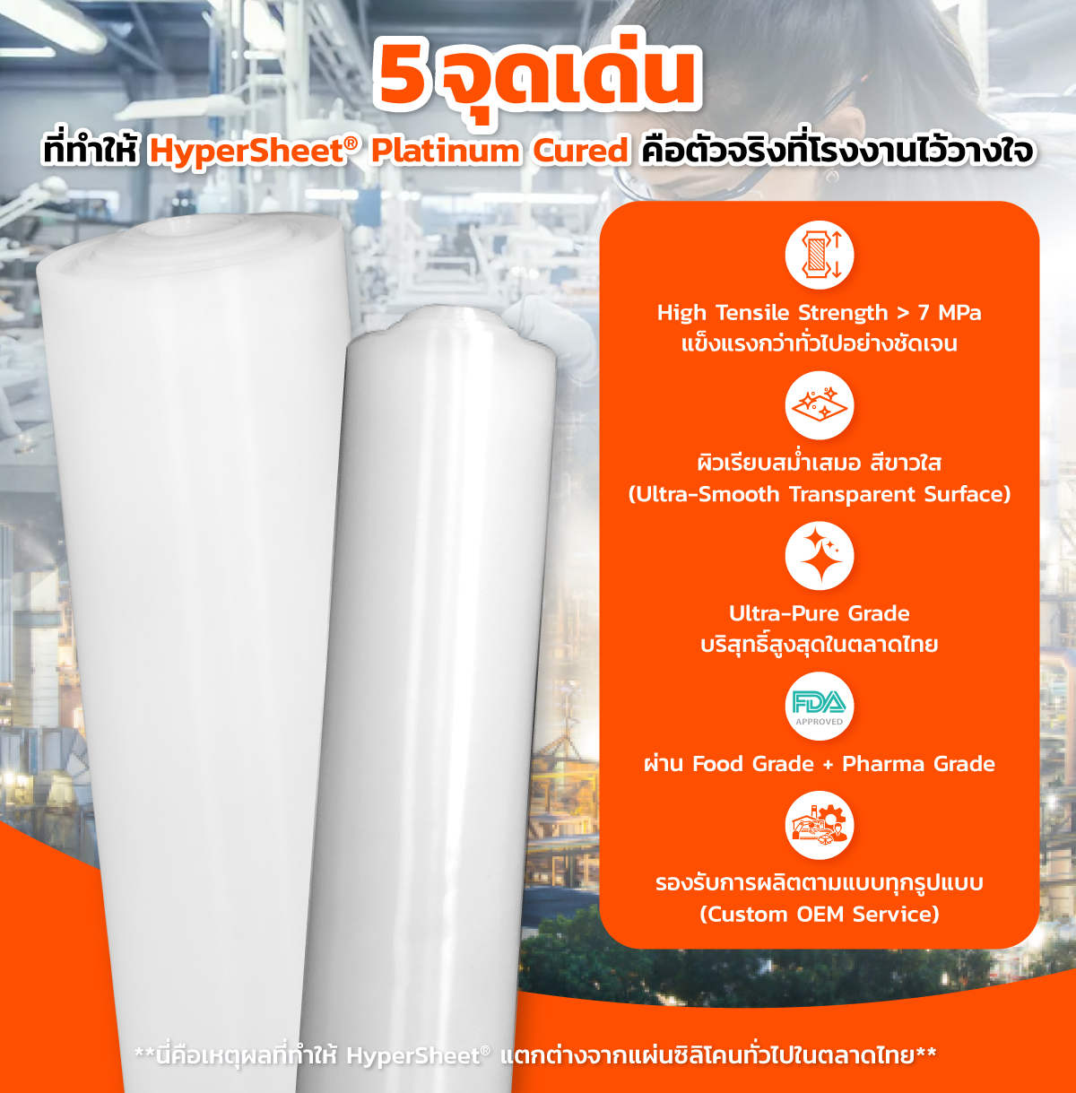 HyperSheet® - แบรนด์เดียวในไทยที่ผลิตและจำหน่ายแผ่นยางซิลิโคน Platinum Cured สำหรับงานอุตสาหกรรมจริง