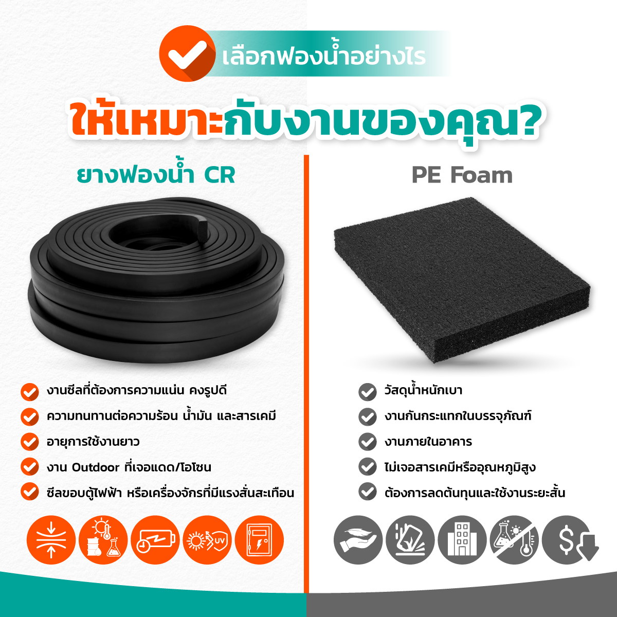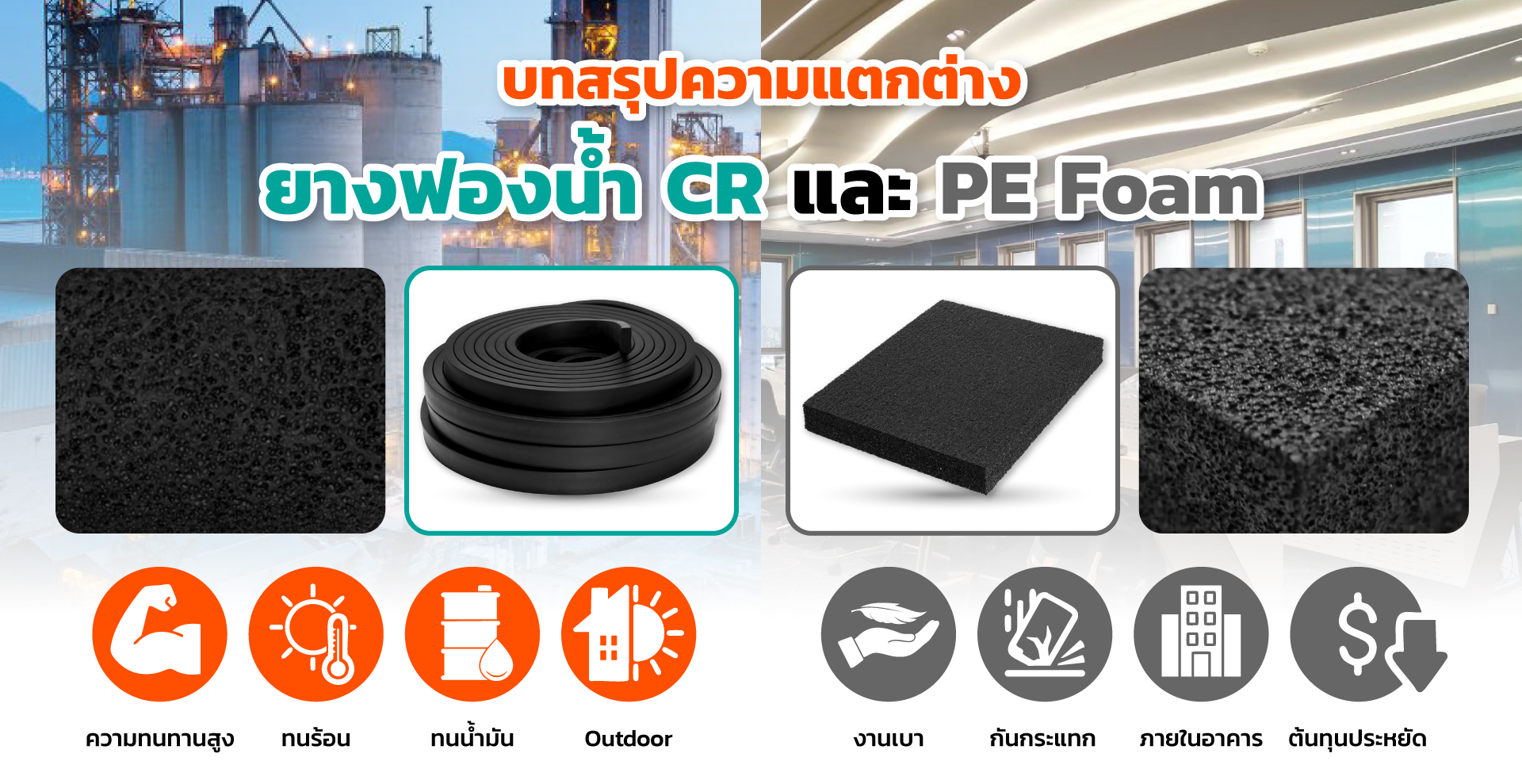 FAQ - คำถามที่พบบ่อยเกี่ยวกับยางฟองน้ำ CR vs PE Foam