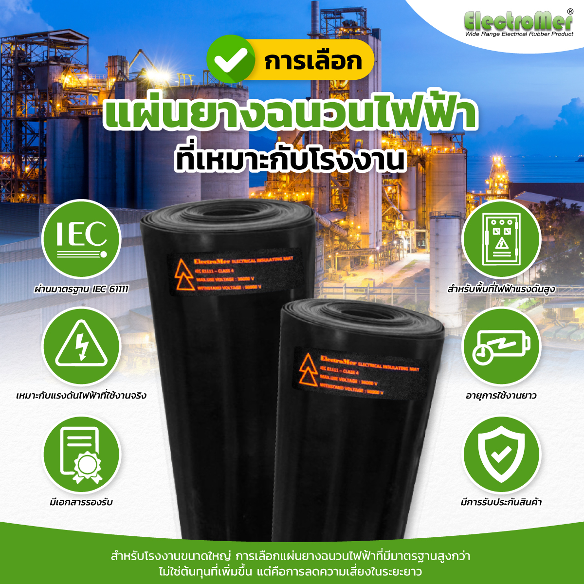 สำหรับโรงงานขนาดใหญ่ การเลือกแผ่นยางฉนวนไฟฟ้าที่มีมาตรฐานสูงกว่า ไม่ใช่ต้นทุนที่เพิ่มขึ้น แต่คือการลดความเสี่ยงในระยะยาว