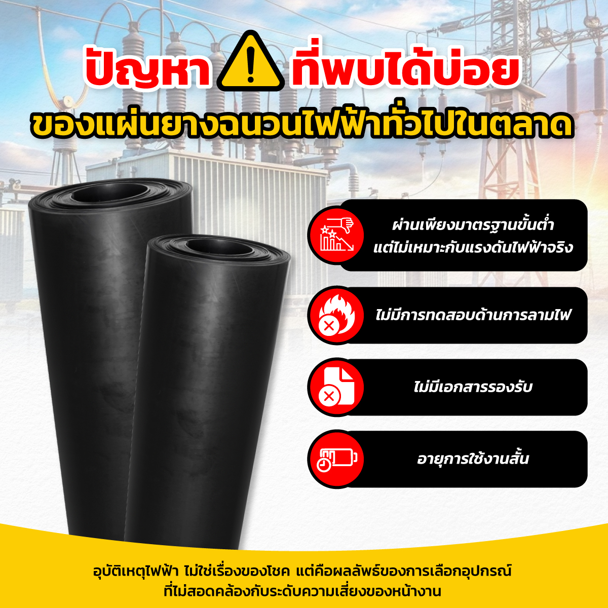 คือ แผ่นยางฉนวนไฟฟ้าทั้งที่ในความเป็นจริง แผ่นยางชิ้นนี้คือด่านแรก ที่แยกระหว่าง “ความปลอดภัย” กับ “อุบัติเหตุร้ายแรง”