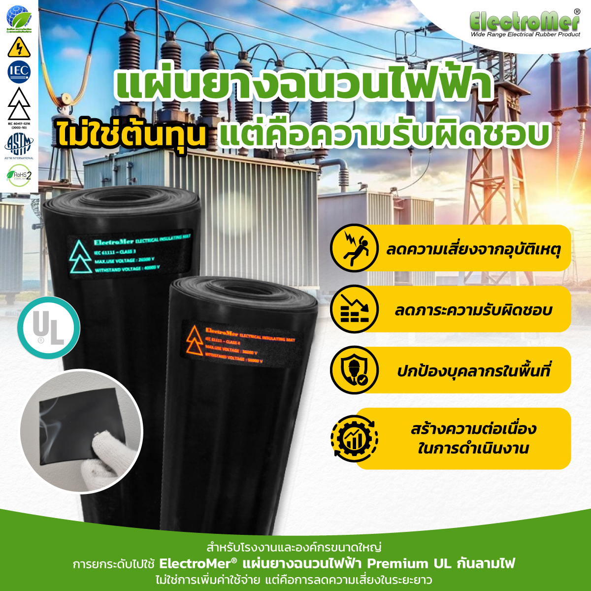 ElectroMer® แผ่นยางฉนวนไฟฟ้า Premium UL กันลามไฟ