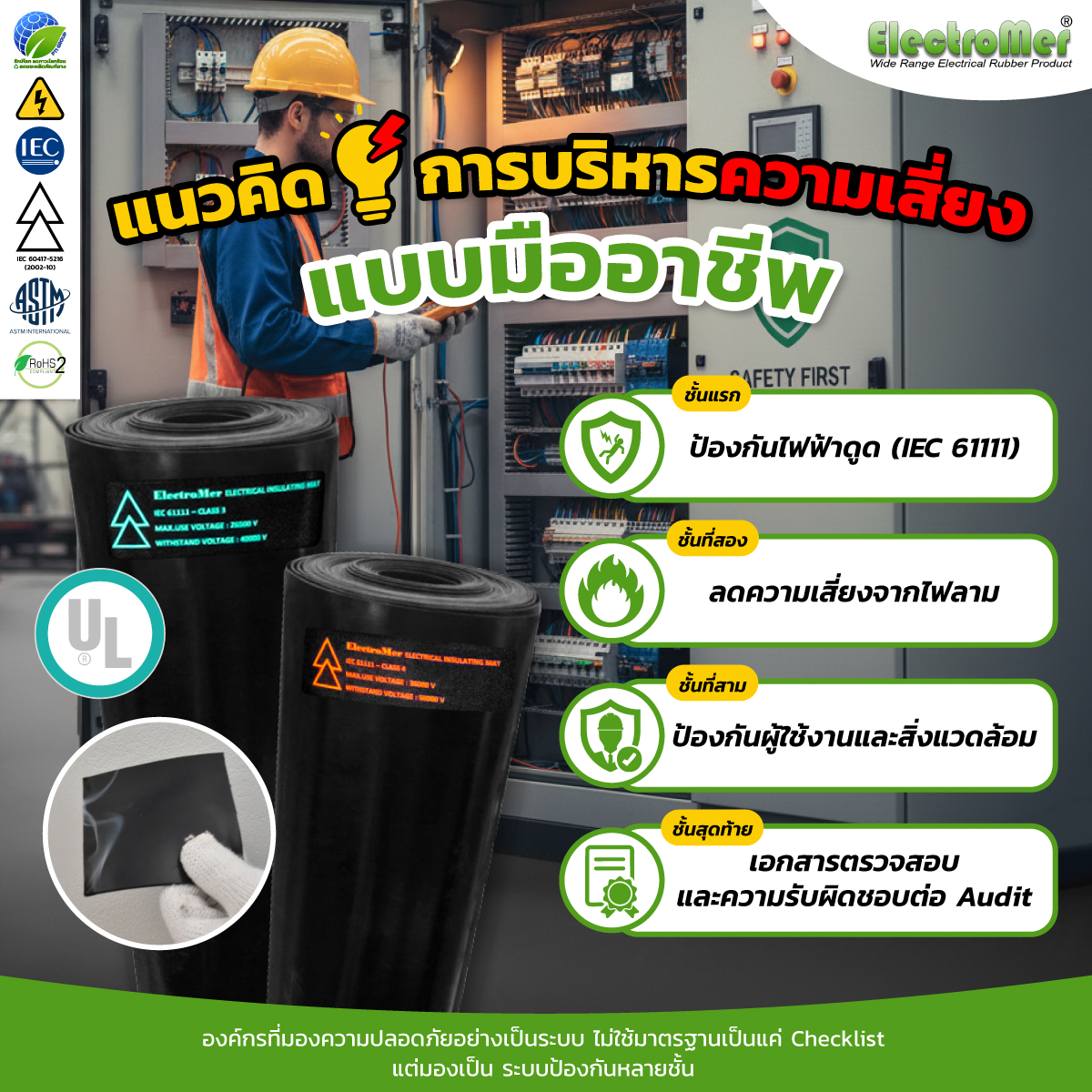 ทำไมหลายองค์กรจึงเลือกใช้ ElectroMer แผ่นยางฉนวนไฟฟ้า Premium UL?