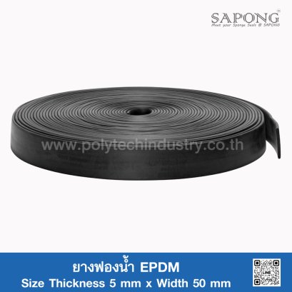 EPDM Sponge Rubber Size Thickness 5 mm x Width 50 mm , high heat resistance Resistant to usage environment Resistant to UV Ozone, water and steam, operating temperature -50 to +160 ºC , Tel : 0-2257-7154 / MB : 086-307-7319 / Line OA : @PTIRUBBER