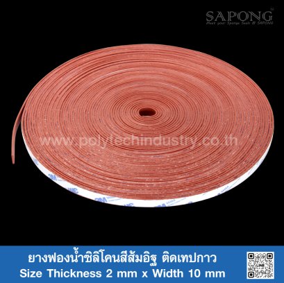Firebrick Silicone Sponge Rubber Self-Adhesive Tape Size Thickness 2 mm x Width 10 mm Resistant to heat up to +270°C, food grade (FDA), no contaminants. Highly flexible, recovers well, does not lose shape. Excellent resistance to the environment, UV Ozone, sunlight, safe for use in industry / Tel : 0-2257-7154 / MB : 086-307-7319 / Line OA : @PTIRUBBER