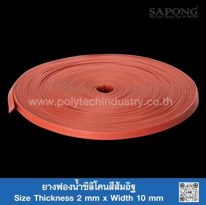 Firebrick silicone sponge rubber Size Thickness 2 mm x Width 10 mm Resistant to heat up to +270°C, food grade (FDA), no contaminants. Highly flexible, recovers well, does not lose shape. Excellent resistance to the environment, UV Ozone, sunlight, safe for use in industry / Tel : 0-2257-7154 / MB : 086-307-7319 / Line OA : @PTIRUBBER