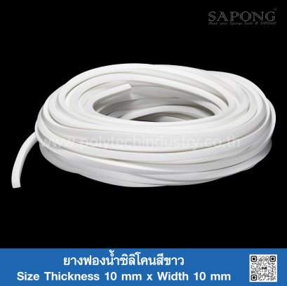 White Silicone sponge rubber Size Thickness 10 mm x Width 10 mm Resistant to heat up to +220°C, food grade (FDA), no contaminants. Highly flexible, recovers well, does not lose shape. Excellent resistance to the environment, UV Ozone, sunlight, safe for use in industry / Tel : 0-2257-7154 / MB : 086-307-7319 / Line OA : @PTIRUBBER