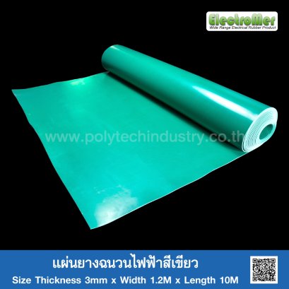 Green electrical insulating rubber sheet, thickness 3 mm, can withstand a maximum voltage of 17000 V. (Class 2 IEC61111), suitable for use on the front of MDB Switchboard cabinets, electrical cabinets, etc. Passed the test with a Cer. Certificate passed Audit standards. Contact for inquiries. at Tel : 0-2257-7154 / MB : 086-307-7319 / LINE OA : @ptirubber