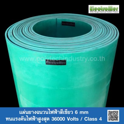 Green Electrical insulation rubber sheet, thickness 6 mm, with a maximum voltage of 36000 V. (Class 4 IEC61111), suitable for use on the front of the cabinet, MDB Switchboard, electrical cabinet, etc. Tested with a Cer. Certificate in accordance with Audit standards. Buy 2 rolls or more (20 meters or more). Contact us for product prices. Sell at Tel: 022577154 MB: 0982898676 / 0863077319 LINE OA : @ptirubber