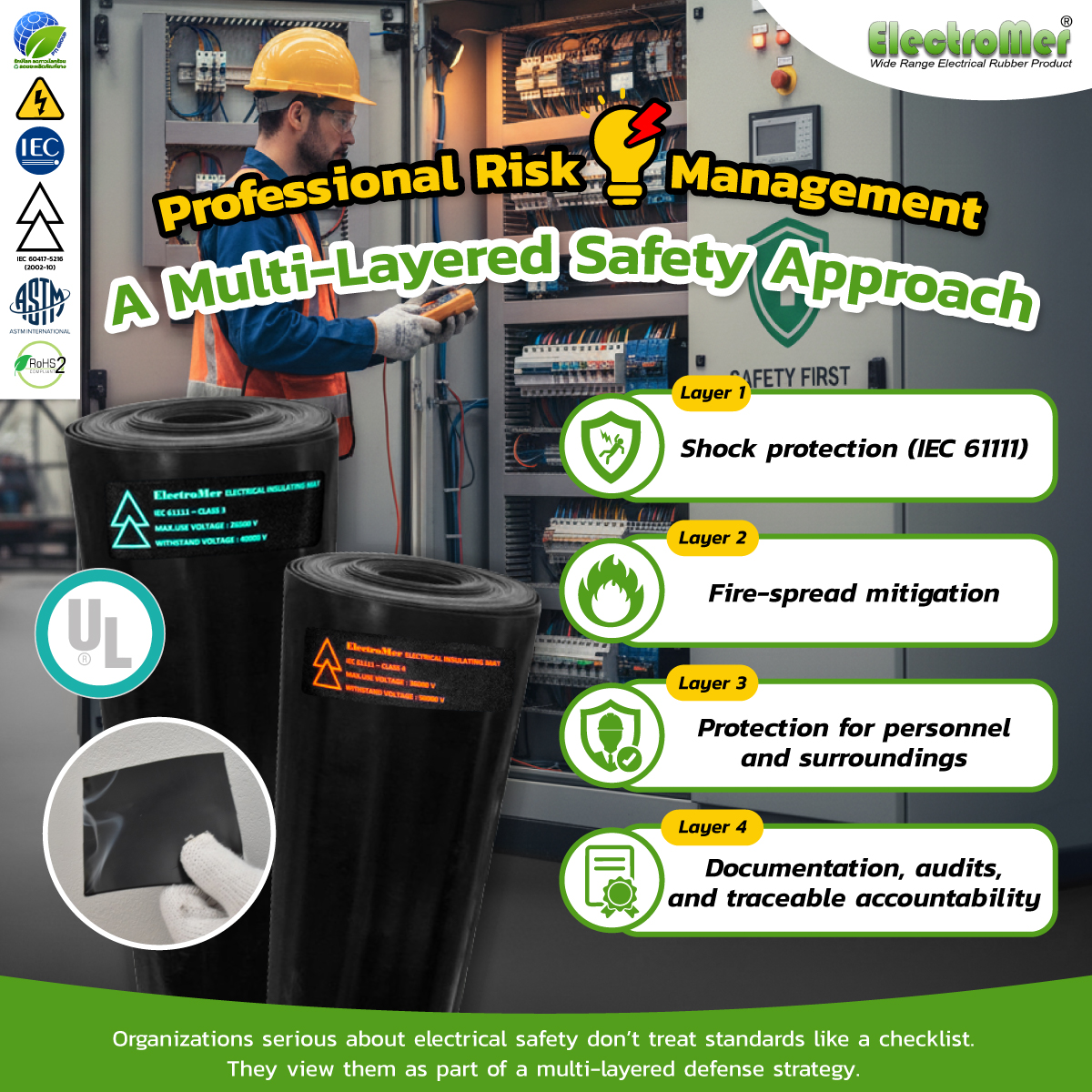 Many organizations assume that once a mat is certified to IEC 61111, it’s safe enough.
