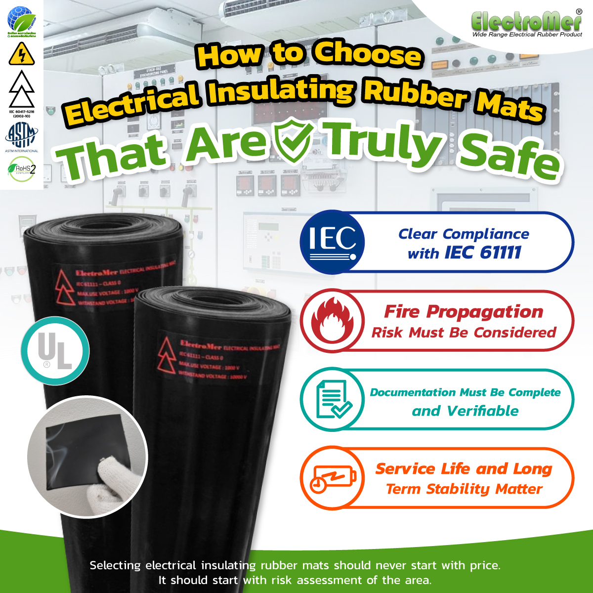 This is why many facilities are upgrading to ElectroMer® Premium UL electrical insulating rubber mats, which meet both electrical insulation standards and flame-retardant requirements, with complete documentation ready for inspection.