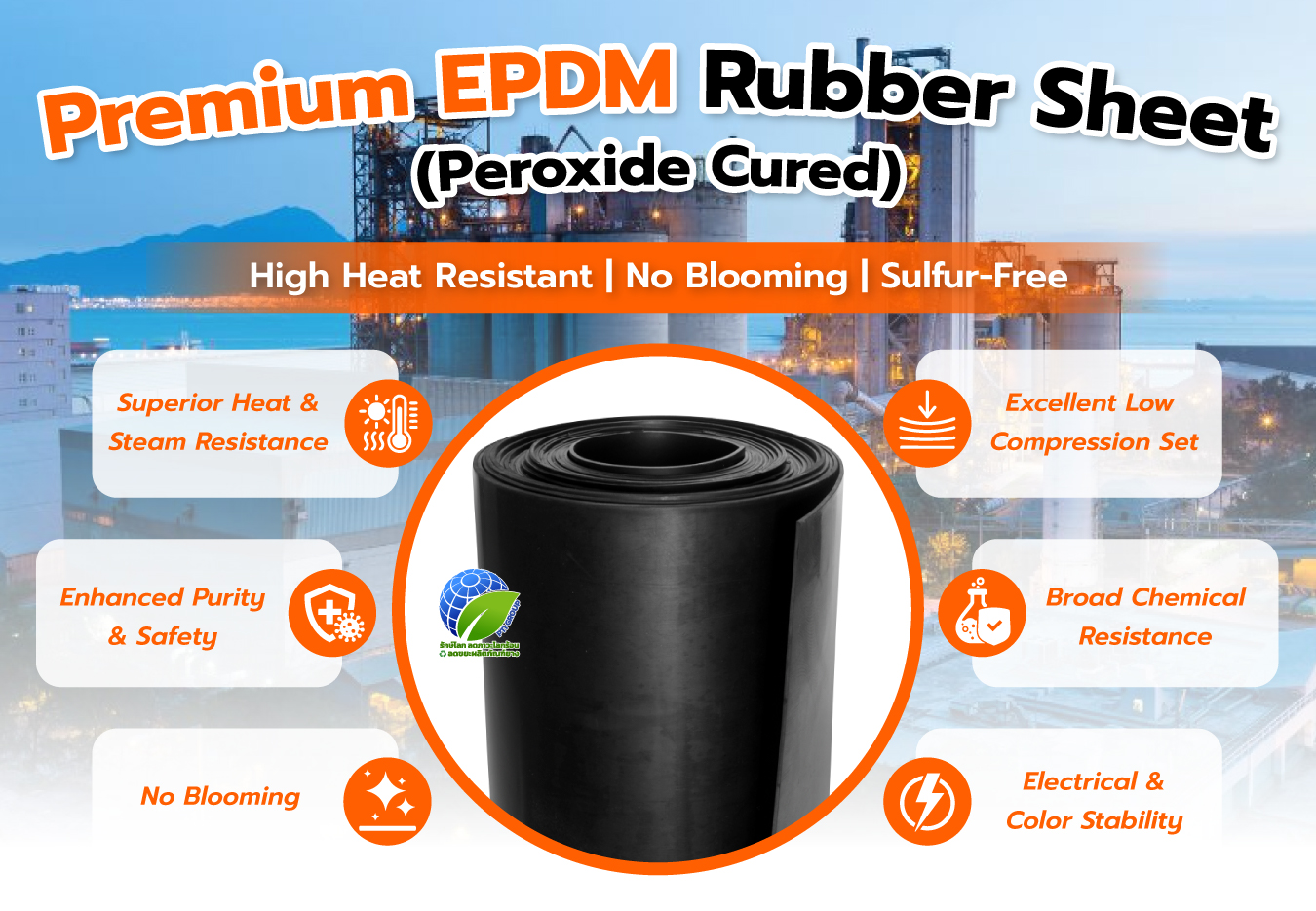 Elevate your industrial standards with Premium EPDM Rubber Sheet (Peroxide Cured) under the Hypersheet® brand. Unlike standard EPDM rubber in the market, our sheets are manufactured using a 100% Peroxide Curing System (Sulfur-Free).
